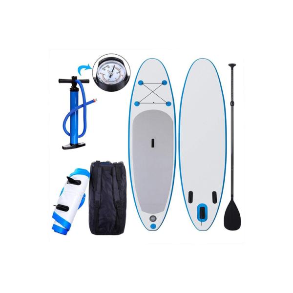 Best Choice Products presents our brand new Inflatable Paddle board. This durable board is made of strong PVC material that keep it rigid and able to resist rough waters. Its tough outer shell helps with preventing dents or dips from forming on the board when impacting rough terrain. It is constructed with a non-slip pad on the deck to keep your balance as you stand and float through the water. The best feature is its ability to deflate into an easily portable and compact size. Roll it up and easily carry it with you in the trip bag (included). The high pressure pump inflates the board through the top deck air valve within minutes. The board also comes with a fiberglass paddle that can extend from 65″ to 84″, allowing you comfort-ability as you sweep across the water. The Deal with in the midst of the board is convenient for carrying at the same time as it’s inflated. With its light weight design, it eliminates the hard struggles of trying to load and unload it compared to the average un-inflatable boards. Roll up this paddle board, inflate it, and enjoy a beautiful day paddling across your favorite water destination.