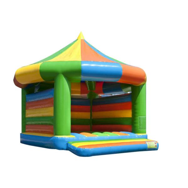 The Funny Inflatable Bounce House with bright and fun colors is easily recognizable .This shape of this inflatable bounce house is reminiscent too ,a circus tent on the top .This inflatable is upbeat and kids will bounce all day long. It will absolutely bring more fun and excitement to your kids. We put 100% spirit on safety of each inflatables .For inflatable bounce house ,the most important part is to keep the jumping surface very durable when kids making constant jumping at the whole long time .So we 10cm width protection strips to each 2cm width side of the stitching of all the jumping surface .